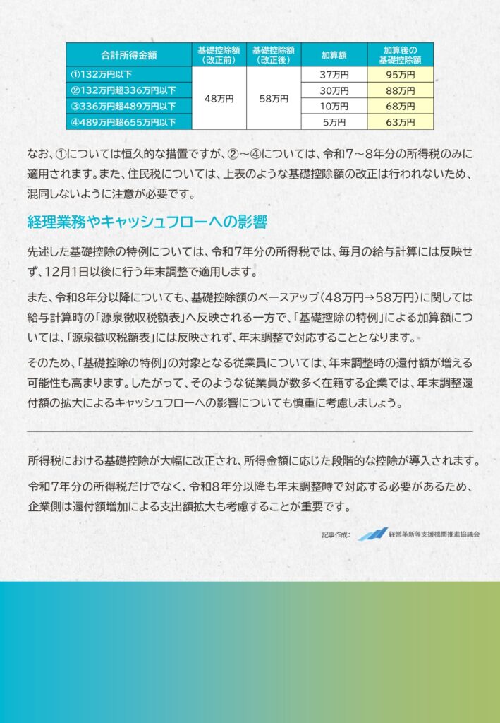 【基礎控除の特例】令和8年分以降も年末調整での対応が必要に