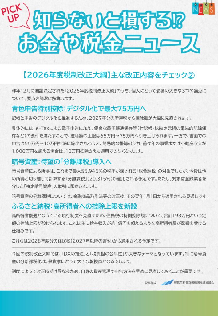 【2026年度税制改正大綱】主な改正内容をチェック➁